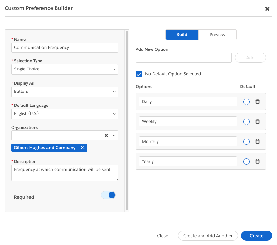 [新規追加]ボタンをクリックします。[カスタム優先設定ビルダー]モーダルが開きます。